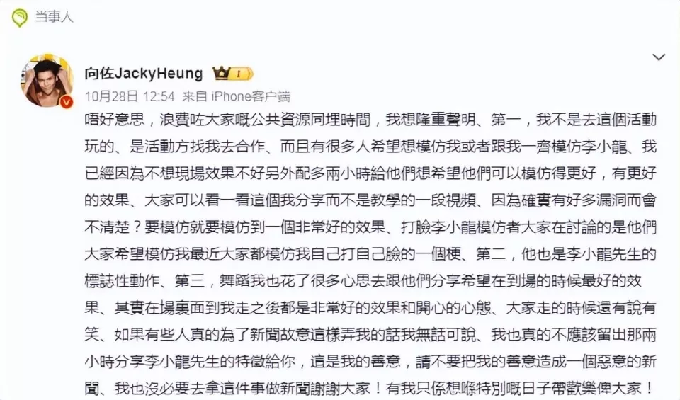 这就是向佐掌掴李小龙模仿者的后果!向佐发文解释