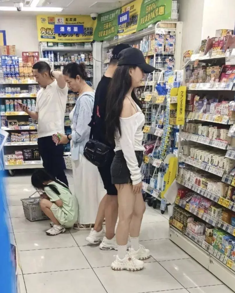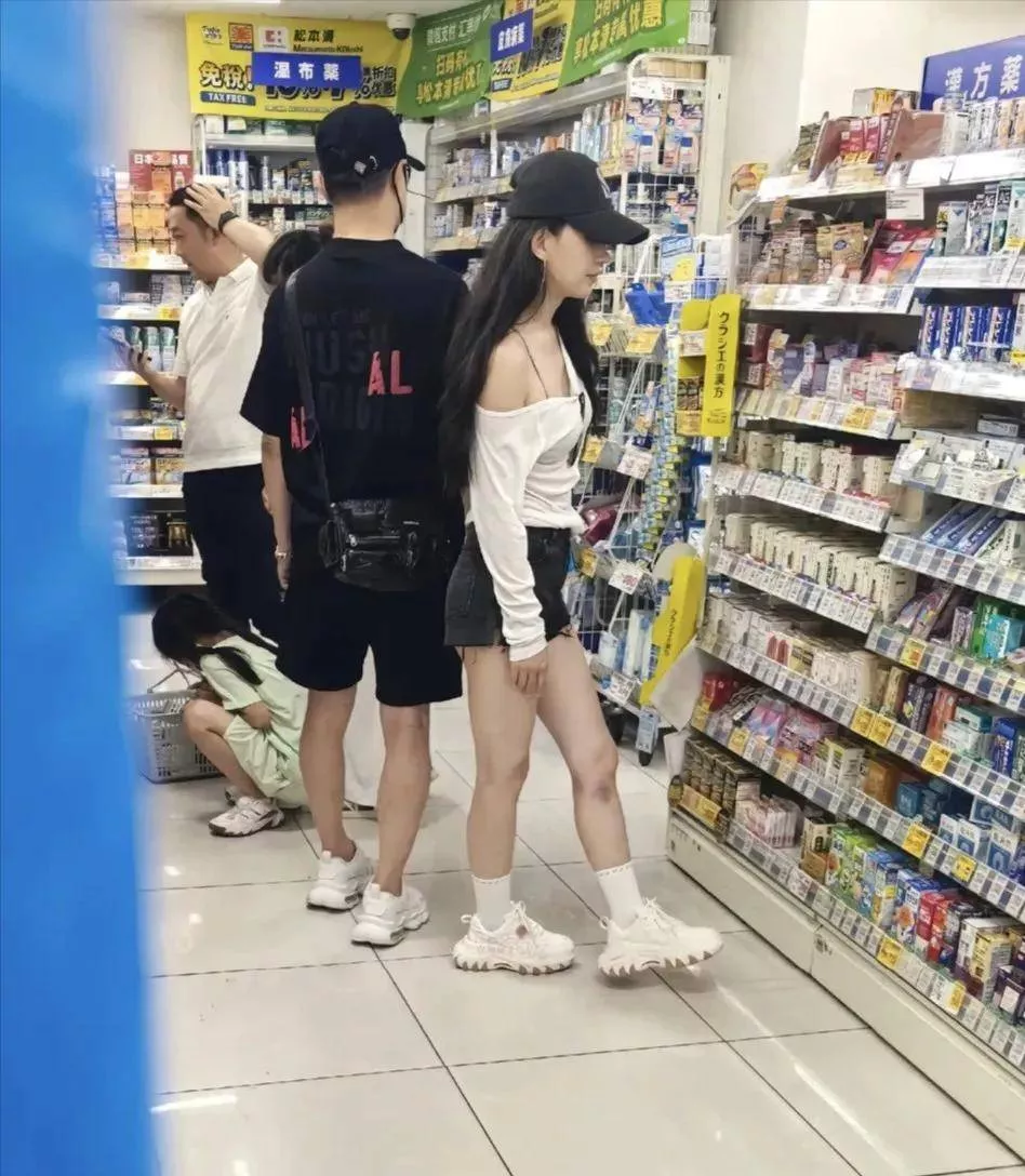 他们在药店逛了很久,盯着置物架上的药品查看,疑似要买什么药品。