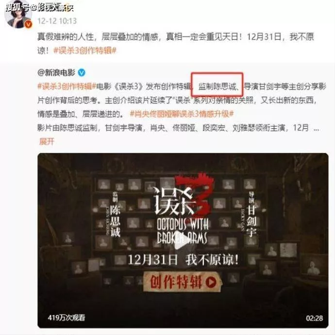 佟丽娅和陈思诚离婚好几年了。最近两人一起拍了部叫《误杀3》的电影,陈思诚当监制,佟丽娅演主角。这事被传出来后,网上有人说他俩要复合。结果没过多久又有消息说,佟丽娅又相信爱情了,但这次对陈思诚完全没给面子。