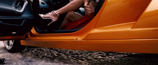▲ 《碟中谍3》中的Maggie Q,单肩露背高开叉红色长裙,橙色兰博基尼超跑,形象比她在《赤裸特工》中更加惊艳。