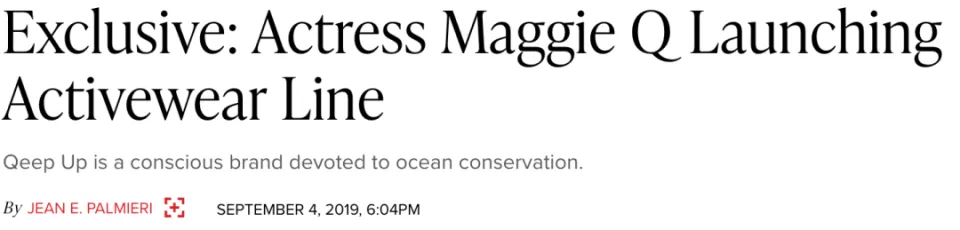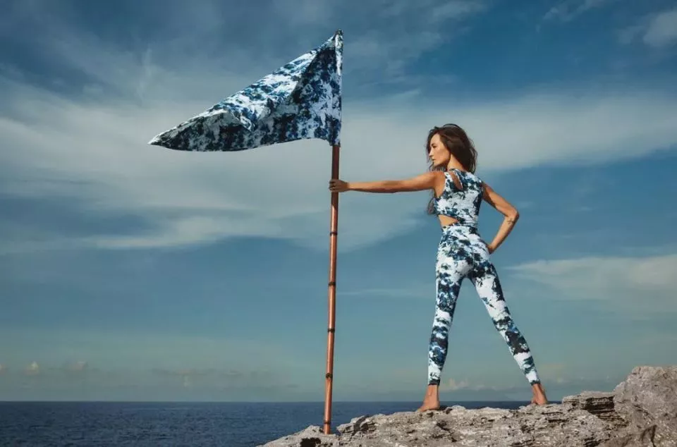 ▲ 2019年,热爱运动的Maggie Q创立自己的运动品牌“Qeep Up”,品牌主打可持续性环保材料,包括泳衣、瑜伽服在内的所有服饰均回收自海洋垃圾中的塑料纤维。