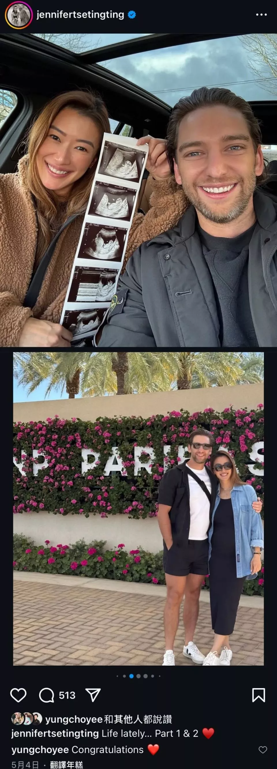 ▲ 照片中,谢婷婷与男友Mathew一起,她手持婴儿超声波照,大方晒出怀孕喜讯。