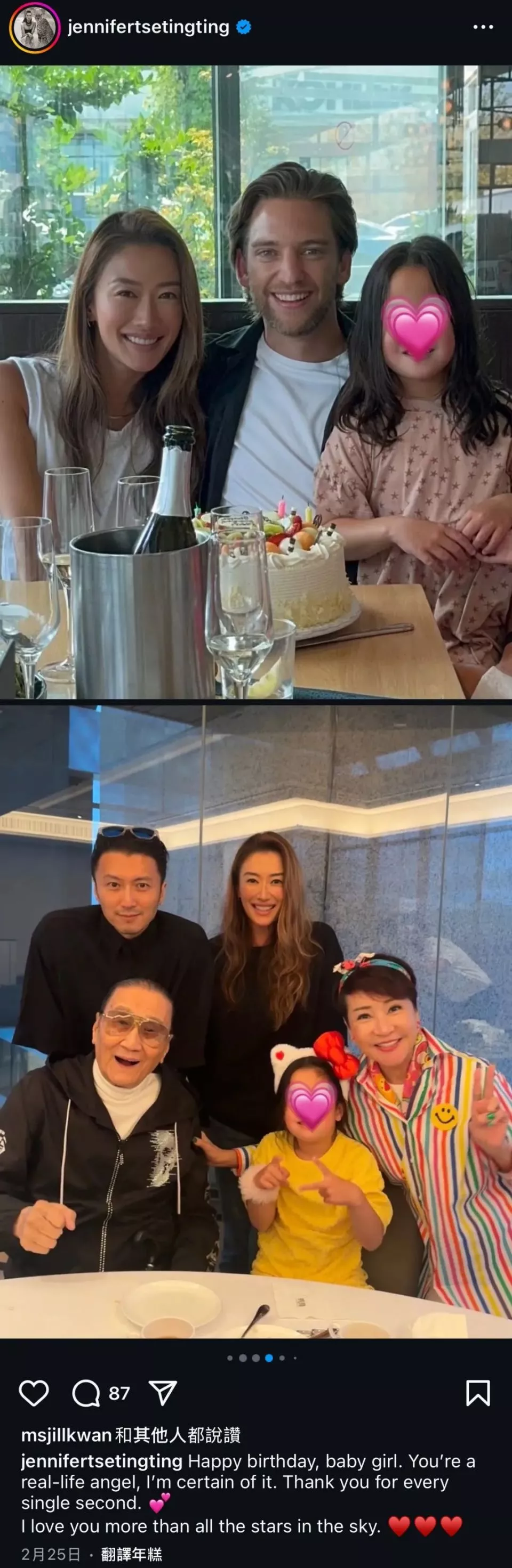 ▲ 今年2月,谢婷婷与现任男友Mathew以及谢家全家一起为女儿庆生。