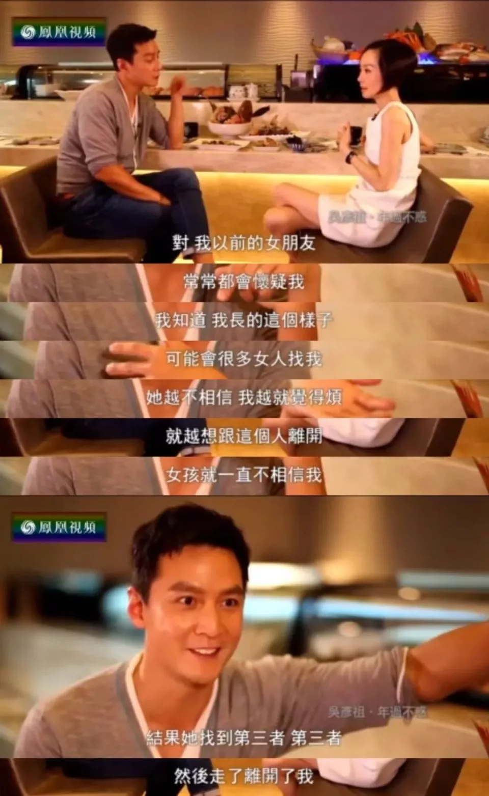 分手后,吴彦祖一度伤心到抑郁,“(分手后)哭到睡着,醒来后才发现自己哭过。”