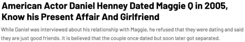 ▲ 这段和Daniel Henny的恋情,短暂到还没等公开就结束了。在入行将近十年的时间里,Maggie Q几乎只谈帅哥,而且全部都是不到一年的短择,真正公开的恋情,其实也只有和吴彦祖的那段。