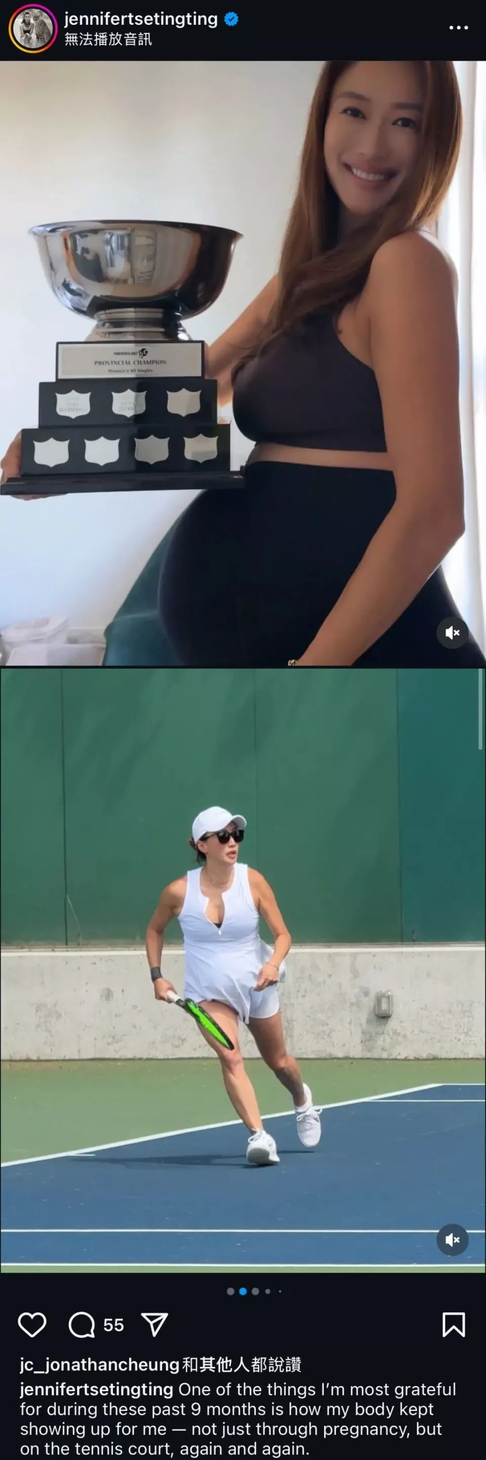 谢婷婷从小热爱运动,一直在打网球,就在前两天,怀孕已经7个月的谢婷婷甚至参加了网球大师赛,并且拿到两个冠军。