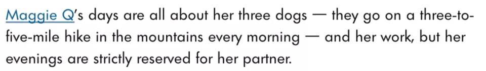 ▲ 紧接着,2022年5月,Maggie Q在采访中透露,自己目前身边有一位“关心我胜过我本人”的伴侣。