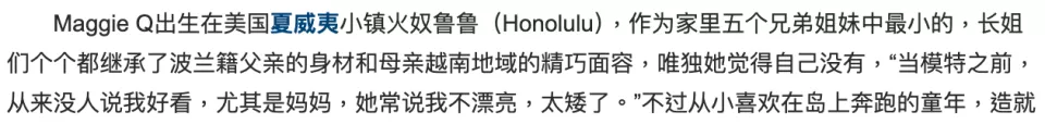 ▲ Maggie Q的父亲是来自纽约的爱尔兰移民,70年代被派往越南参加越战,参战期间,他结识了来自越南本地的Maggie Q母亲,战争结束后,共同前往夏威夷生活,他们共孕育了5个孩子,Maggie Q是其中最小的一个。