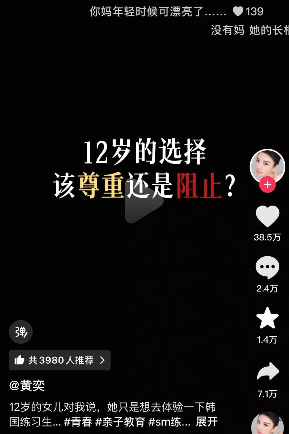继小沈阳的女儿沈佳润练习生出道,扭转口碑后,黄奕的闺女也生出执念,不想读书,要做一个发光的偶像。