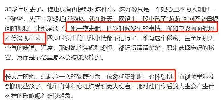 “她”4岁时,被妈妈同事的儿子,她最亲近的叔叔,哄骗至房间,被侵犯。