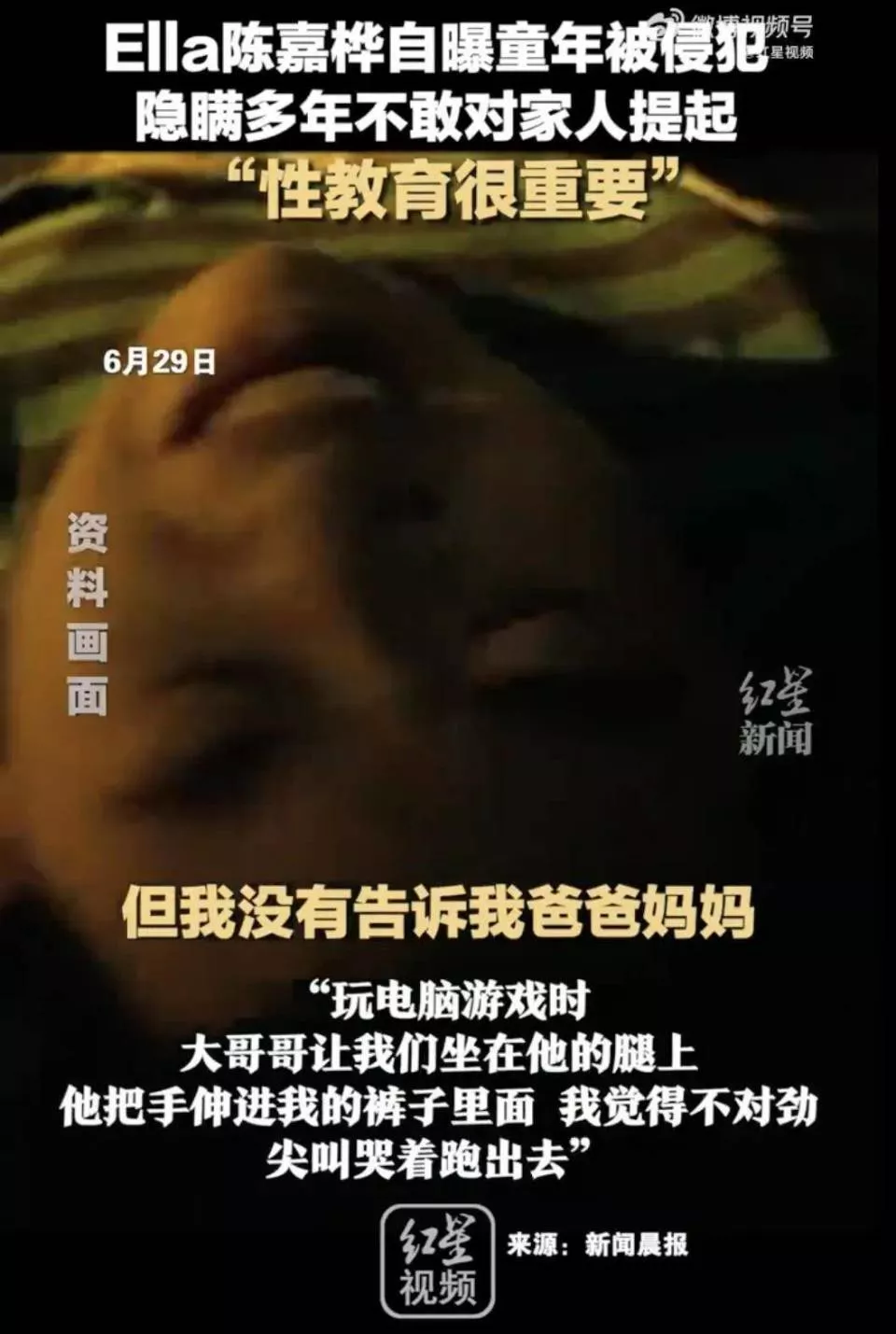 SHE的成员Ella陈嘉桦,曾当众讲述过,她童年被侵犯。