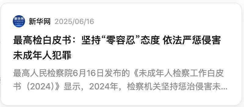 最高人民检察院发布《未成年人检察工作白皮书(2024)》。