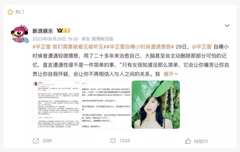 后来,又有女明星勇敢地站出来,说出自己曾被侵害的事实。