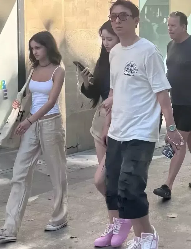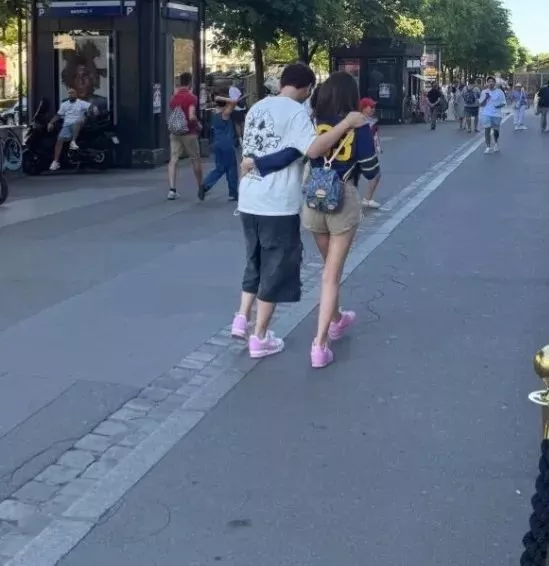 网友巴黎偶遇他与新女友搂腰逛街,脚下还穿着显眼的粉色情侣鞋,状态十分甜蜜。
