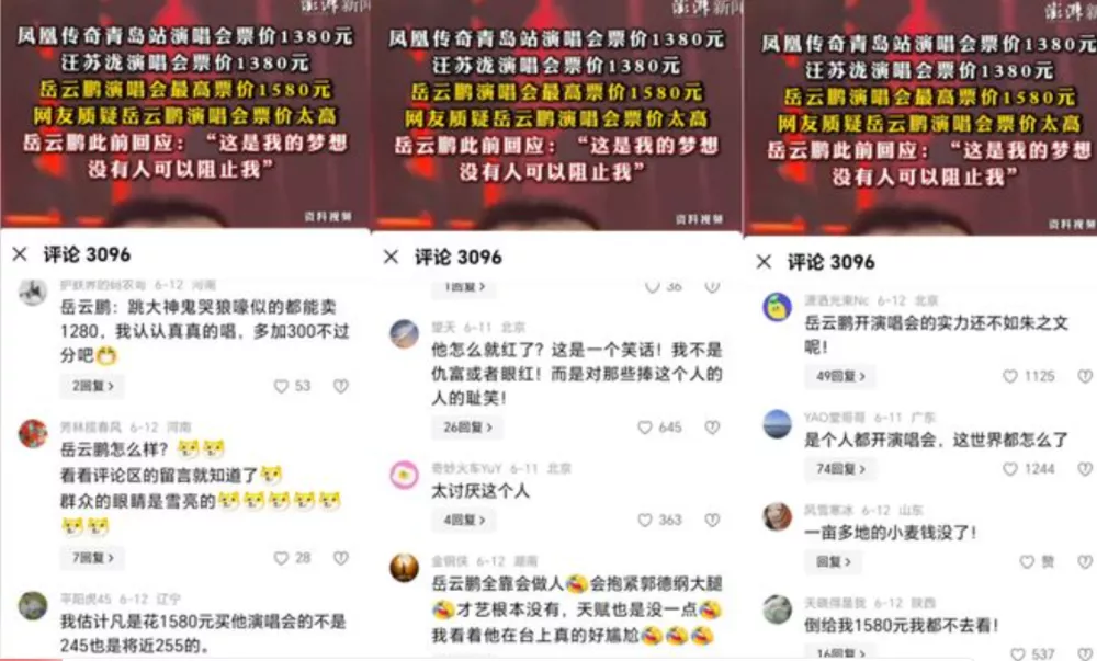 再说岳云鹏的演唱会门票价格,从演唱会定档之后大量媒体就报道过,岳云鹏演唱会最高价超过了当红组合凤凰传奇和当红音乐人汪苏泷,引起网友群嘲。