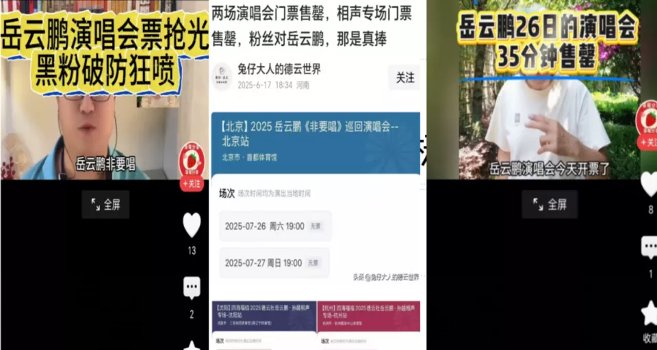 一些德云系自媒体更着急,他们早在6月12日就宣布岳云鹏演唱会门票“售罄”,在他们的蛊惑下,直到演出结束,依然有大量网友相信岳云鹏演唱会门票一票难求,依然还有自媒体在吹嘘岳云鹏演唱会门票短时间一抢而空,简直是天大的笑话。