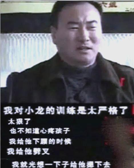 十几米的威亚吊上去,释小龙吓得哭,他父亲就在下面喊:“你是男子汉,不要哭。”