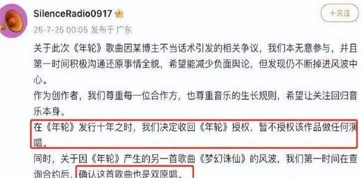 谁能料到,一首十年前的《年轮》竟闹到如今这般地步,多年老友也因这首歌分道扬镳。