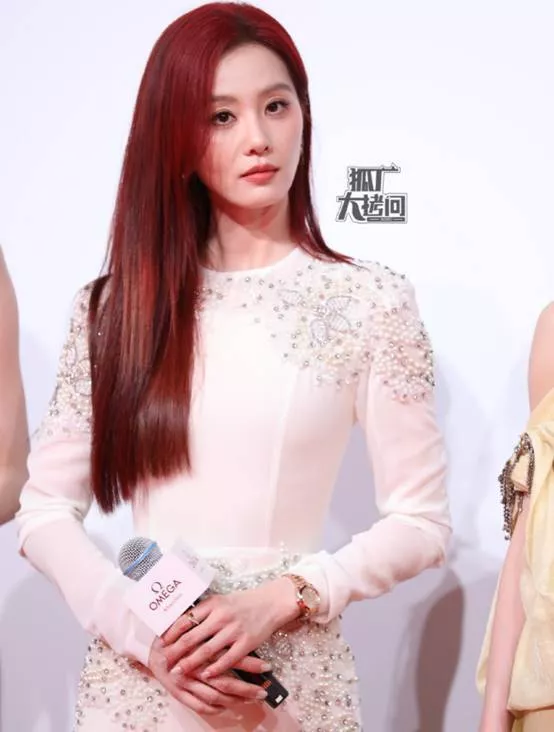 这次她更是放弃了以往黑长直发型,而是将头发染成红色,站在镜头中瞬间成为焦点。