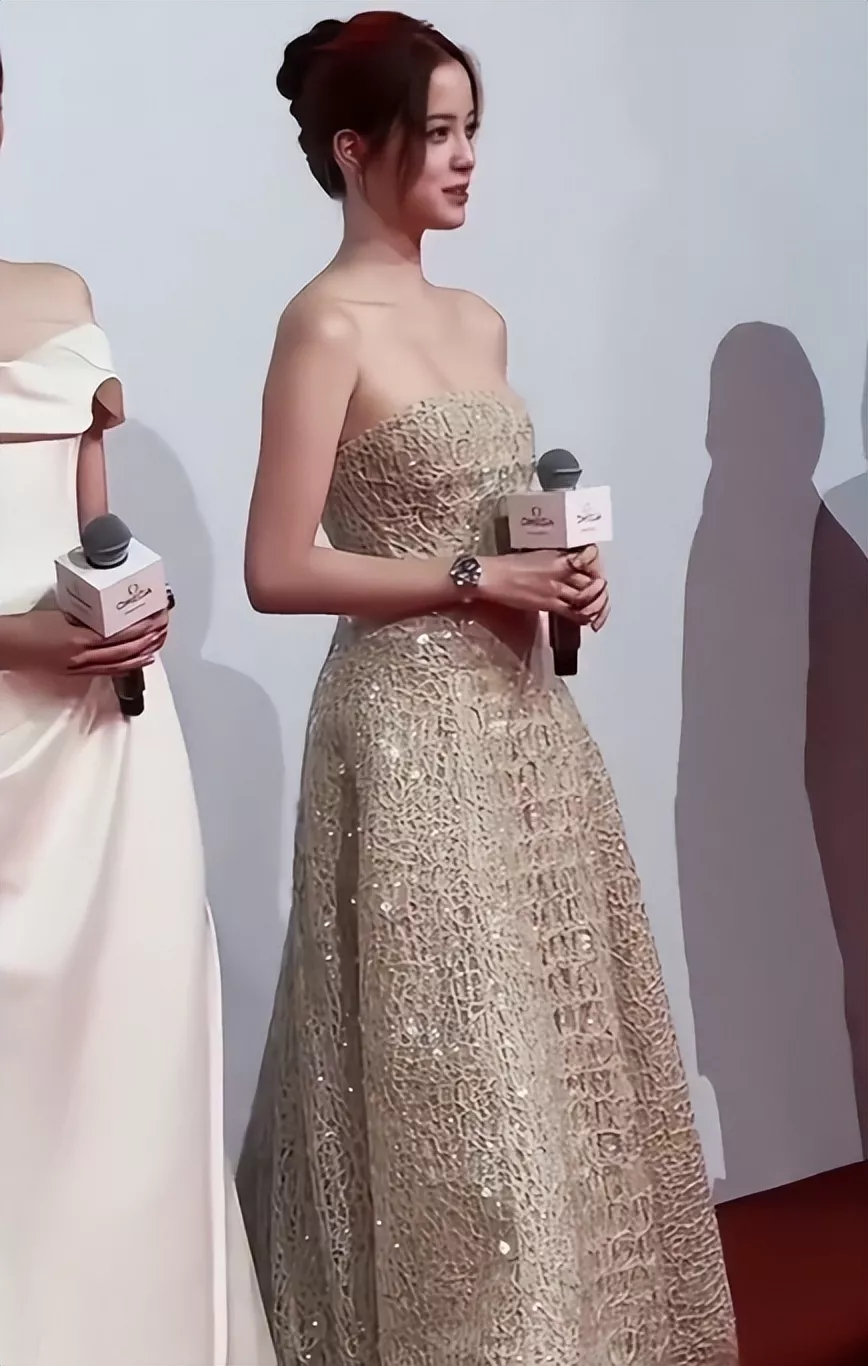 这次她选择了一身碎钻抹胸礼服,飘逸的裙摆有灵动的少女感,厚重的面料又添上几分沉稳。
