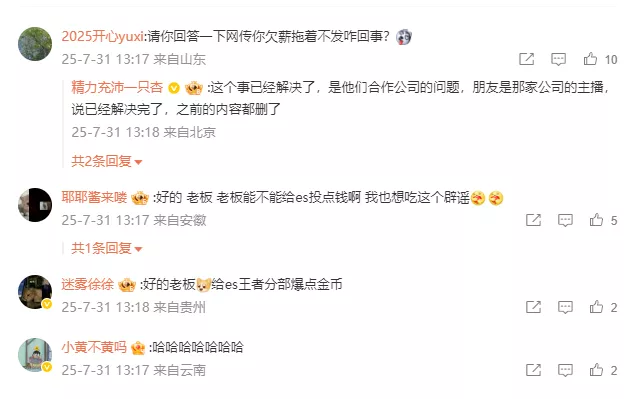 网友们看到何猷君的回应后,也纷纷发表了自己的看法。有网友还追问他拖欠工资那事儿。