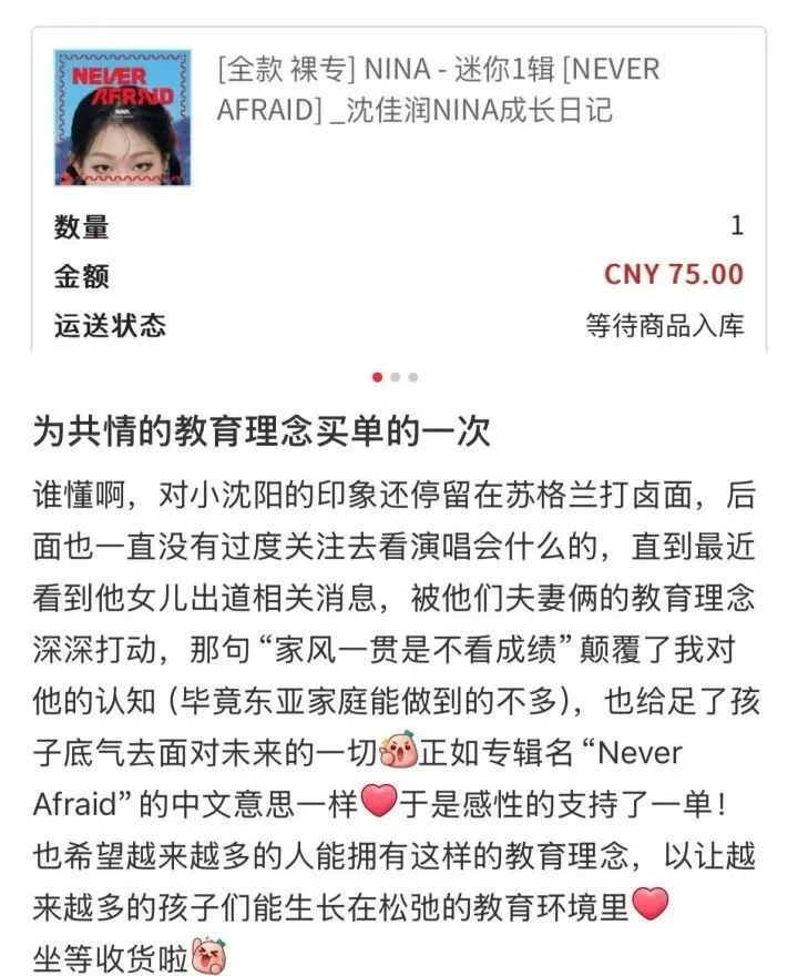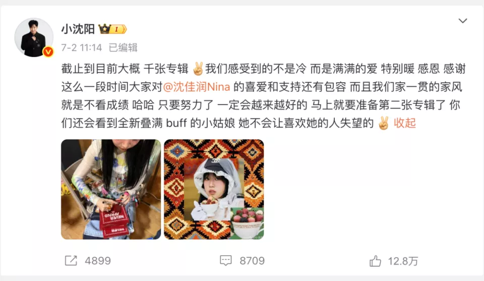 7月2日,售出千张专辑后,小沈阳还发帖力挺女儿,并在一片唱衰中公开回复: