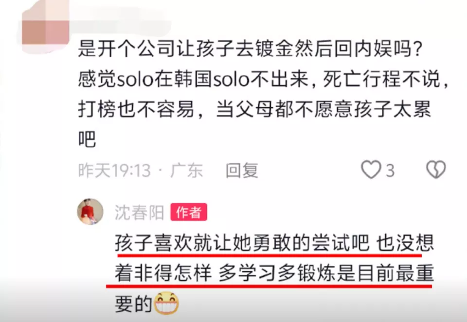 在网友看来,父母投资的公司可以保证沈佳润的出道之路尽可能少吃苦。