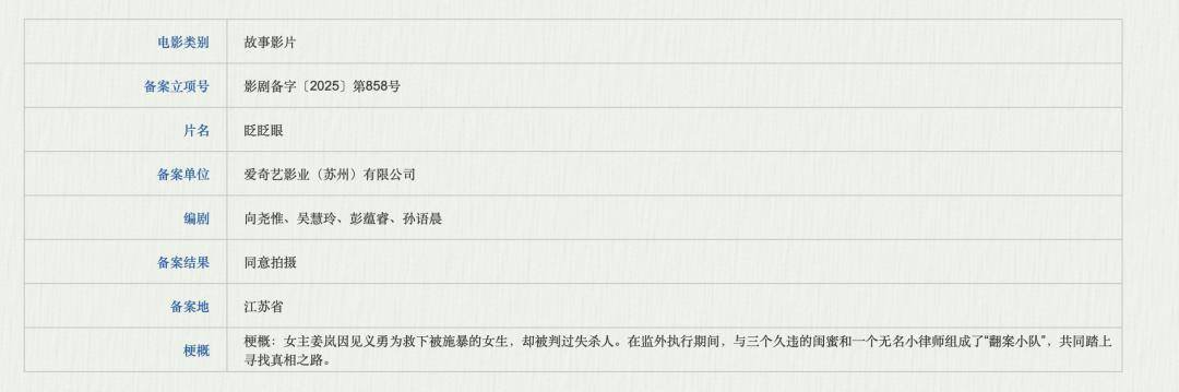 《眨眨眼》由冯小刚监制,宗海英执导,佟丽娅、王皓、王智、王丽坤、吴优等主演,已于今年5月份杀青,暂未定档。