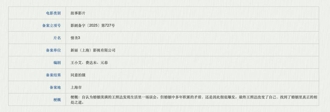 《情圣》系列此前由宋晓飞、董旭执导,肖央主演,第一部在2016年上映,收获6.5亿的高票房。《情圣3》将以婚姻危机为话题展开新篇。