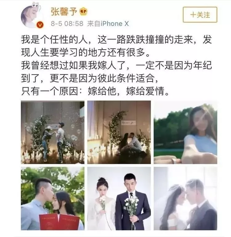 8月1日,张馨予多张合照庆祝与何捷结婚七周年,配文:哈哈,你们总说我不发合影藏着,今天是纪念日,大方一下。看到这条微博的你一定会找到属于自己的惊喜。七年一晃而过,谢谢你们的陪伴和爱。