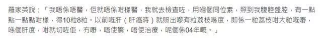 罗家英解释道:“我并不是不治疗,只是治疗方法不是大家想象的那样。我去做了检查,用同位素照了腹腔和盆腔,发现有一些微小的异常,大概有10粒8粒的样子。回想起2004年患肝癌时,检查出来肝上有一颗像荔枝那么大的肿瘤,当时就切除了,之后也没事,不用惊慌,也不需要额外治疗。”