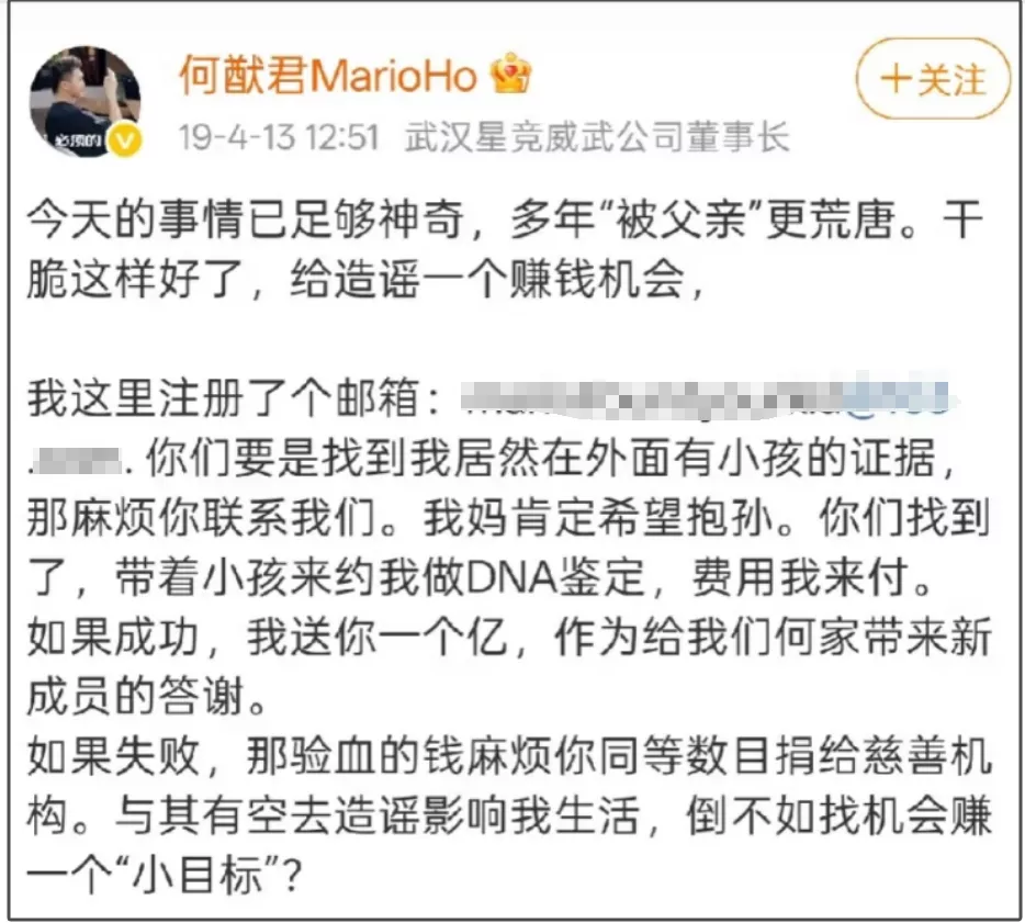 关于私生子传言,何猷君曾经发文否认怒斥造谣,还拿一个亿当作砝码让大家来亲子鉴定。Yumi也否认过,真真假假让人分不清楚。
