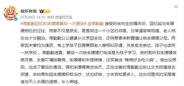 可这样的幸福,终究被朱媛媛骤然离世的消息击得粉碎。