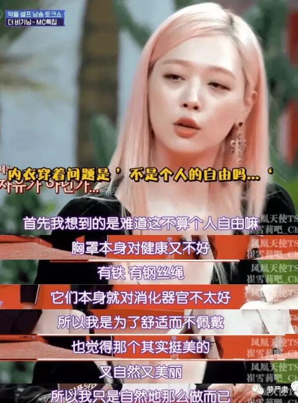 bra”的身体感受,认为内衣对自己来说只是饰品,“我是因为不舒服才不佩戴”。