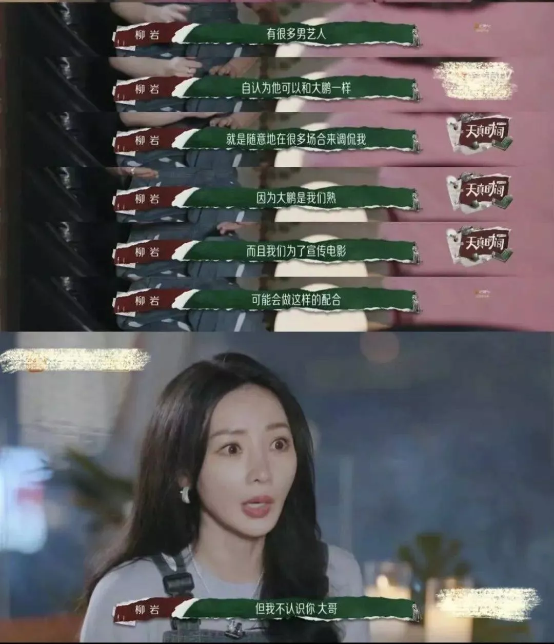 柳岩的道歉,并未换来真正的理解。她曾在一档节目里提到,许多男艺人,自认为可以像大鹏那样,随意在各种场合调侃她,仿佛这是一种理所当然的“玩笑”。