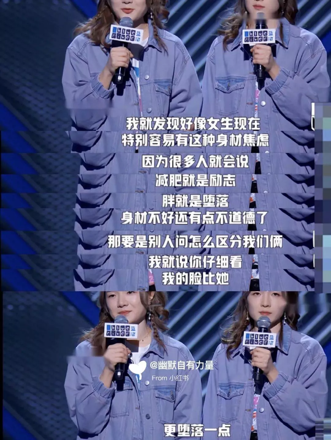 颜怡颜悦曾在脱口秀中犀利地吐槽身材挑战带来的荒谬标准: