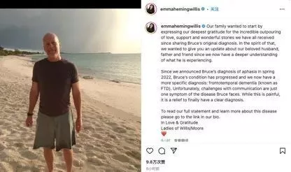 没想到一年之后,他的家人再度发表声明,说他被确诊为额颞叶痴呆症(FTD)。“自从2022年春天我们宣布布鲁斯确诊失语症以来,他的情况有所恶化,而现在我们已经有了一个更明确的诊断:额颞叶痴呆(FTD)。”