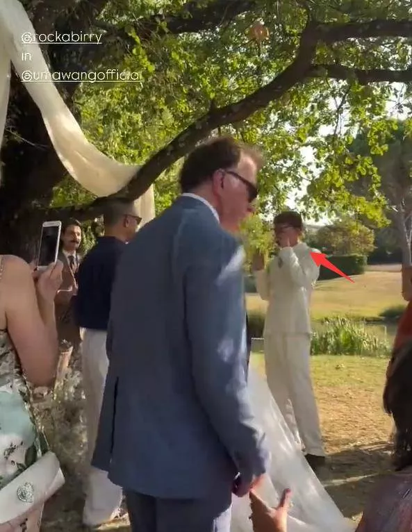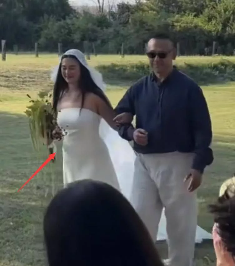 姜文把女儿交给女婿,两人在一棵大树下宣誓,只见姜文女婿穿了一身白西装,又高又瘦,戴着眼镜非常斯文。