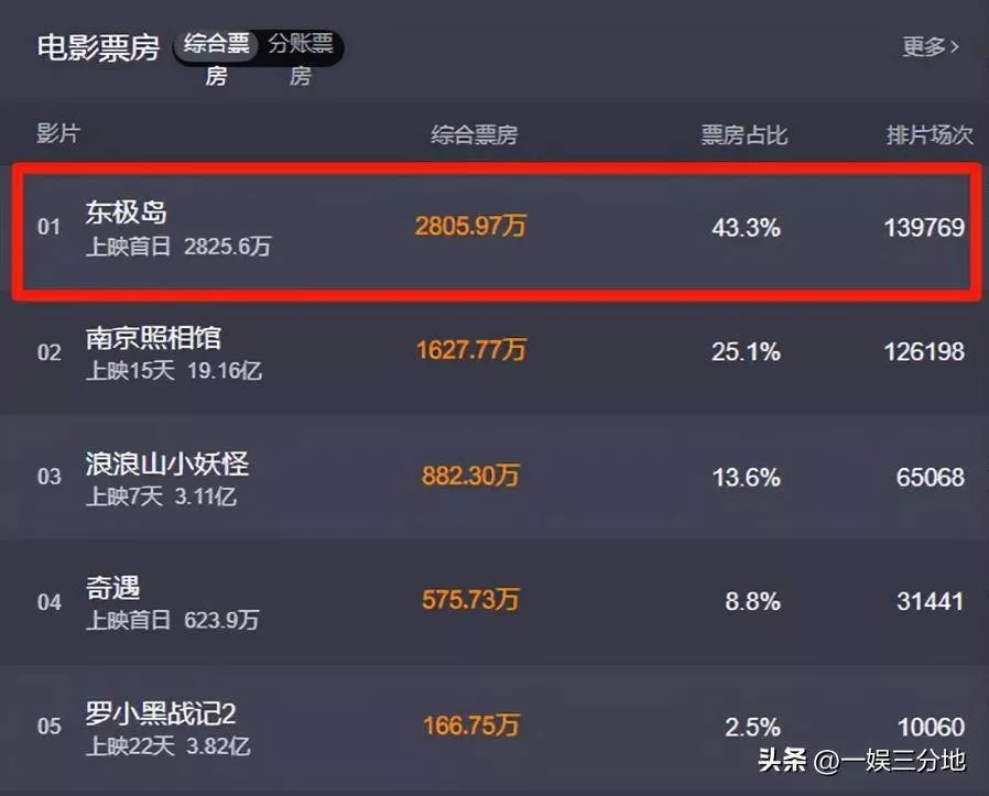 《南京照相馆》上映将近半个月,观众的反馈大多都是好评,同样是揭露战争的《东极岛》,上映一天,票房就是当日冠军。