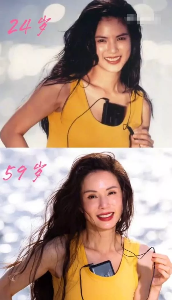 李若彤复刻了35年前的旧照,她穿上黄色背心拍照,笑容明媚,皮肤红润光滑,气色超好!