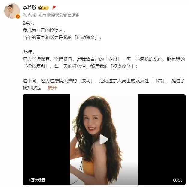 李若彤分享了“投资自己”的经历,她表示:“24岁,我成为自己的投资人,当年的青春和活力是我的「启动资金」;35年,每天坚持保养、坚持健身,是我给自己的「定投」;每一块疯长的肌肉,都是我的「投资复利」,每一天的好心情,都是我的「投资收益」;这中间,经历过感情失败的「波动」,经历过亲人离世的毁灭性「冲击」,挺过了被抑郁症长期困扰的「低谷」……59岁,我发现,爱自己这件事没有终点,投资自己这件事没有亏损。35年过去,我依然是自己的「潜力股」,依然是自己最珍贵的收藏。”