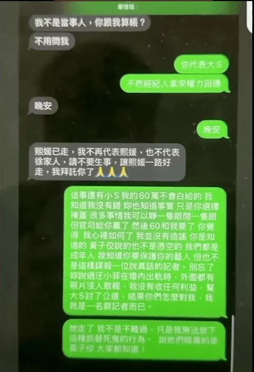 看得出来,葛斯齐对大S似乎是怨恨颇深,大S去世后,葛斯齐还曾发消息给大S经纪人,想要追回赔偿的30万。直言当年汪小菲出轨的照片是他帮大S爆料的,“我没有收任何利益,帮大S讨了公道”。