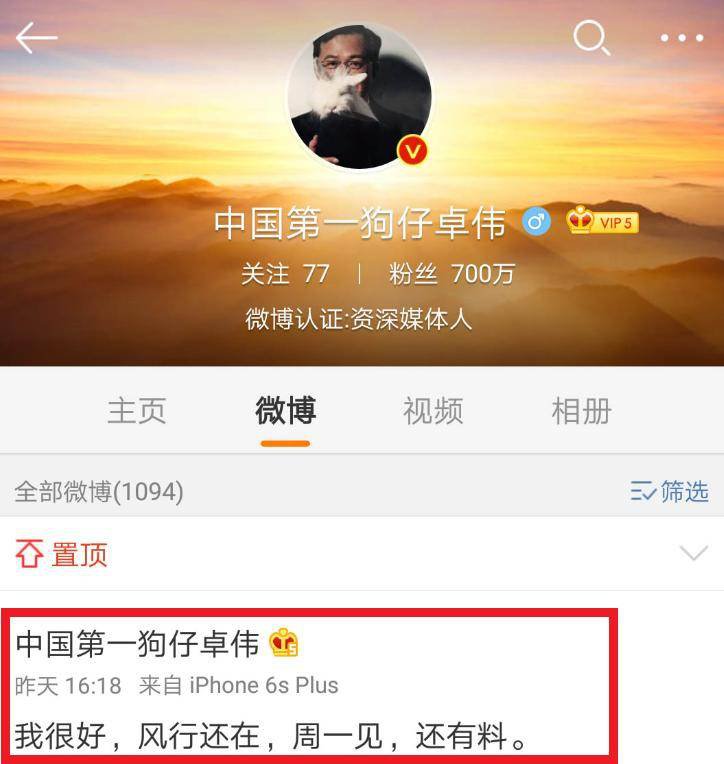 卓伟作为圈内的“娱乐第一记者”,曾爆出过圈内的许多“惊天大瓜”,可以说明星对他恨的是咬牙切齿,但网友对他的职业却十分欣赏,毕竟总是能在第一时间掌握明星们的各种劲爆物料。