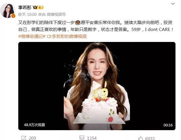 李若彤表示:又在彤学们的陪伴下度过一岁,愿平安喜乐常伴你我。继续大踏步向前吧,投资自己,做真正喜欢的事情,年龄只是数字,状态才是答案。59岁,I dont CARE!