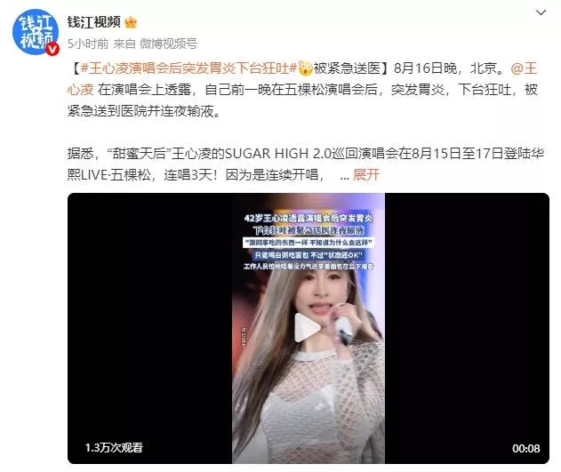 王心凌演唱会后突发胃炎下台狂吐!被紧急送医