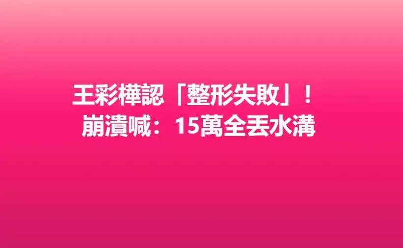 等王彩桦年纪大了,又沉迷打针,一次三五万一星期就要补一次,打到满脸淤青又肿又歪,还时常失败钱打水漂。