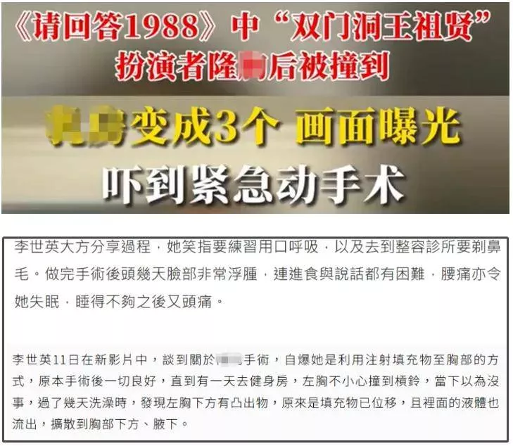 另外,不得不提的是,虽然这么说很残忍,但李世英底子放在那,就算整容了也不算好看,经历了痛苦,却是无效整容,还要面对后遗症,李世英后悔了,对外表示再也不整容了。
