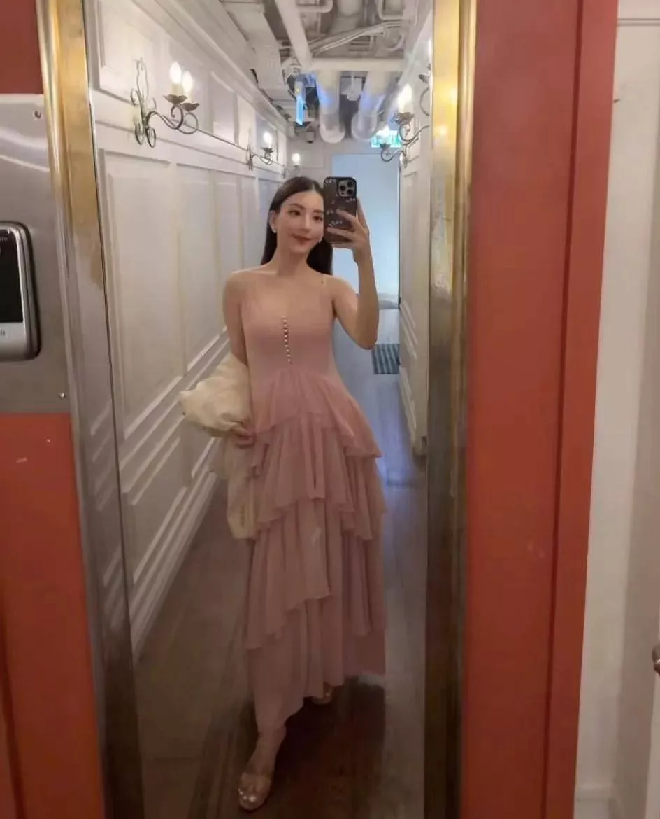 孕期的方媛偏爱穿宽松的长裙,不仅遮盖住肚子,还显得更瘦。她迎风而行,从正面看还能看到一些孕肚,说明她对体重控制得很好,气色也维持得不错。