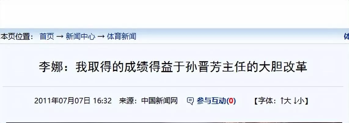 信息来源:2011年7月7日 中国新闻网 李娜:我取得的成绩得益于孙晋芳主任的大胆改革信息来源:2011年7月7日 中国新闻网 李娜:我取得的成绩得益于孙晋芳主任的大胆改革