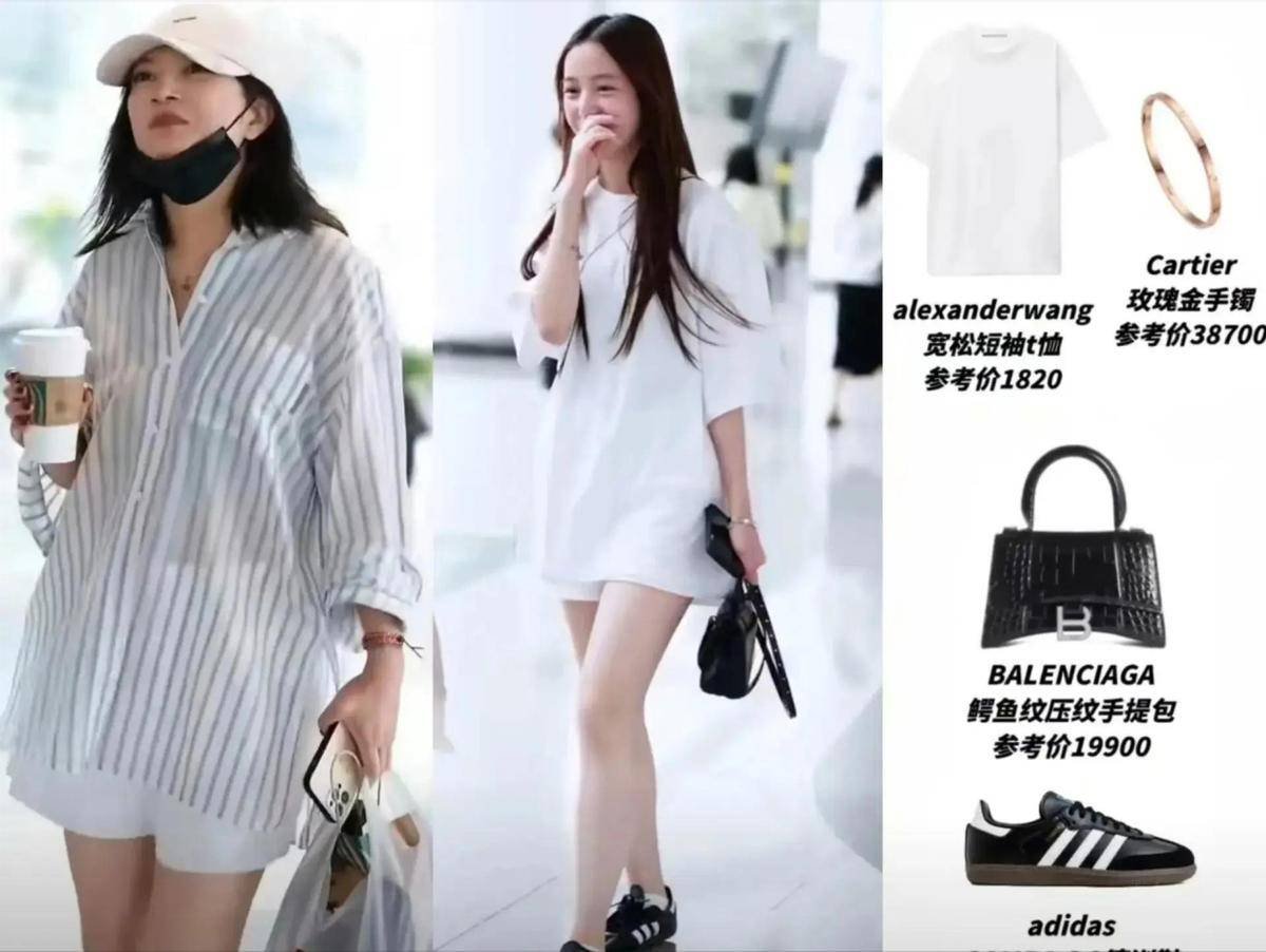 但别看两人穿的挺低调,单品哪一样都不便宜,光是小四月手上一个玫瑰金手镯,据说就接近4w了。更别提她2万的手提包和阿迪达斯的名牌鞋了。